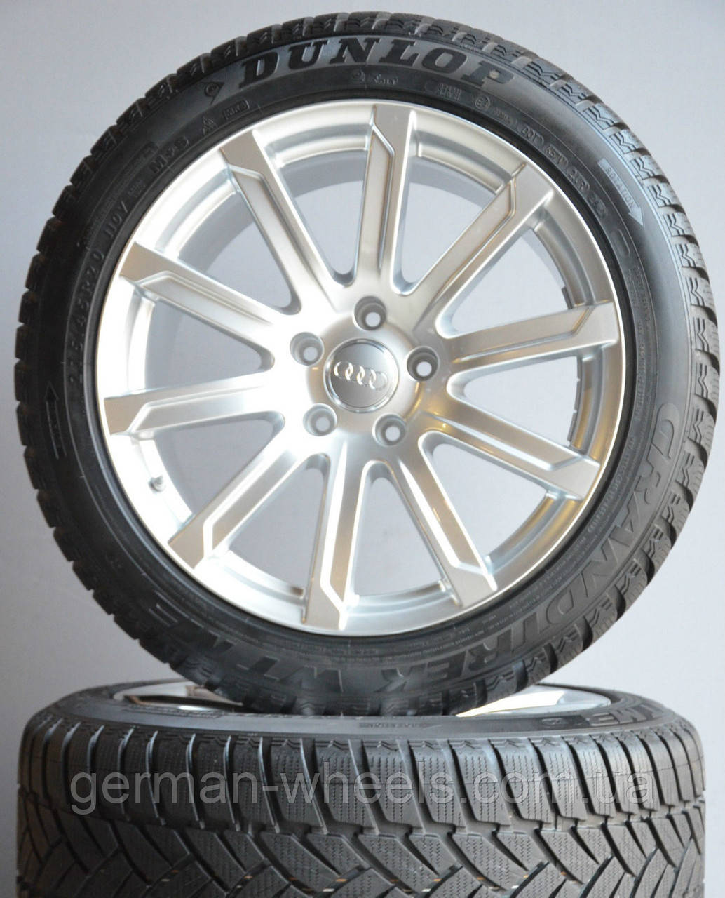 Комплект з оригінальних 20"-дюймових дисків для Audi Q7, з комплектом із зимової гуми бренда Dunlop.